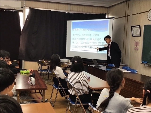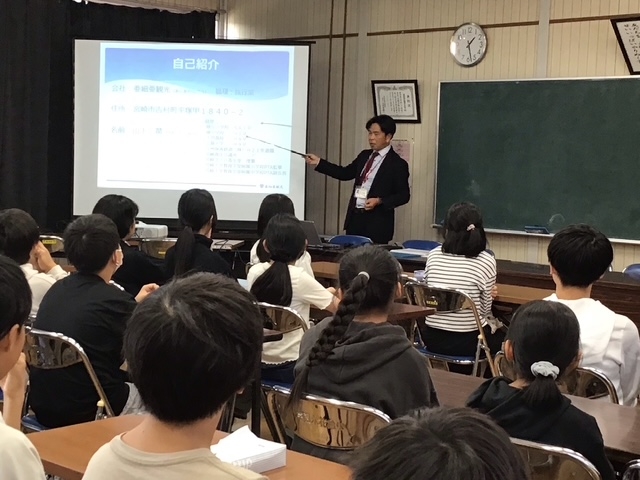 修学旅行に行く前の6年生に、旅行に関わる職種の方々の思いやツアーコンダクターとしてのやりがいについて語ってくださった。児童のキャリア形成はもちろんのこと、修学旅行の意義についても深く考えることのできる機会となった。また、旅行前に山下さんの人柄を知れたことで、修学旅行中にも児童が親しげに会話することができたり、質問等を尋ねたりする姿も見られた。貴重な話を聞けたことで、今までとは違った視点から修学旅行について考えることができたことが大変有り難かった。